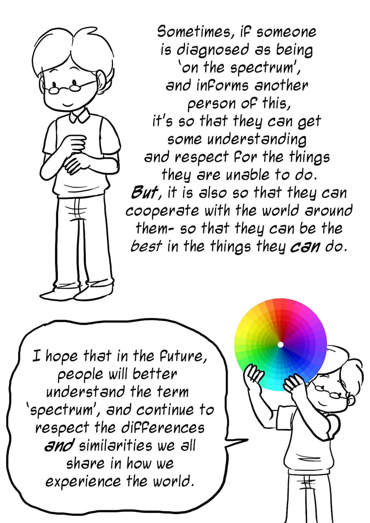 Also, my depiction of ‘the spectrum’ is simplified (to be used as a starting point/simple explanation), if you look into it there are a lot of different traits or factors that make up the spectrum!
